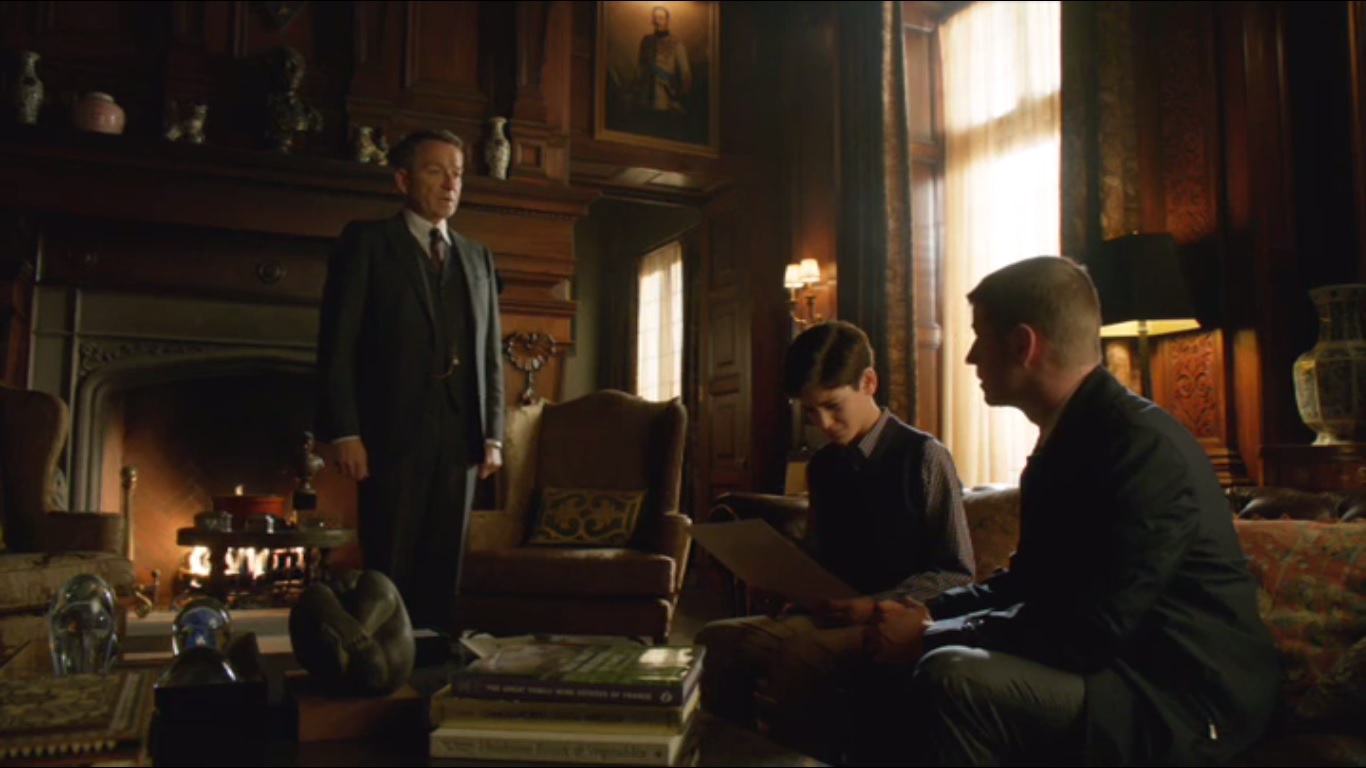Bruce and Selina eat, though Selina gets more joy lobbing bagels at Bruce’s head. If Bruce hits her, Selina will let him kiss her. A little early to be playing up this friendship, isn’t it, Gotham? Also, Selina, no one wants to kiss you that badly. A food fight breaks out to that Pirates of the Caribbean-esque tune while Alfred watches the spectacle and does not intervene. Convenient enough, he gets a phone call from Gordon. Alfred still isn’t a fan of Selina, but hey, she’s a breath of fresh air.