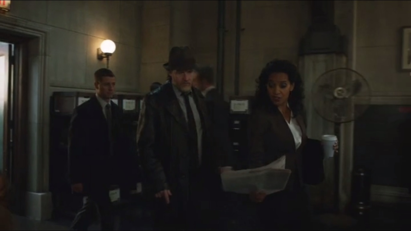Captain Essen is none too pleased about the five dead guards. With the entire office destroyed, there’s little that forensics could analyze from the crime scene. Plus, cameras were destroyed, so there goes the security footage. What Gordon and Bullock do know is that the perps made off with a compound called HMS. Military grade stuff that’s ten times more powerful than C4. Essen must already be tired of these routine cases, so she simply tells the detectives to get to it. Well, I give her this, she’s to the point.