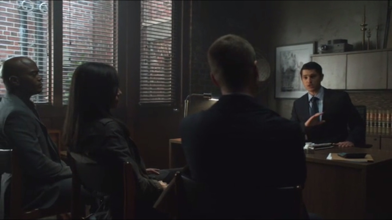 Harvey- remember him? This episode is named after him- informs Dick Lovecraft, played by Al Sapienza, and his team of lawyers that he plans to bring charges against him. Lovecraft isn’t worried. After all, Harvey can’t prove fraud, but Harvey is going after more than that: conspiracy to commit murder. He plays his eye witness card, yet Lovecraft remains strong. Harvey then snaps in a brief flash of anger. Then he’s cool again. It’s almost like there are two sides to Harvey or something.