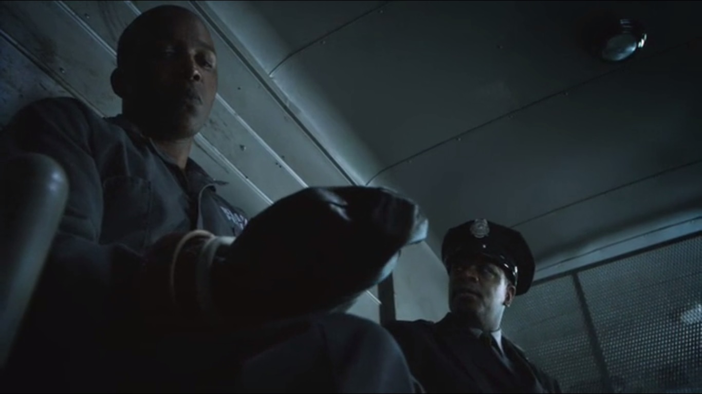 Back with Ian Hargrove, one of the transporting officers notices Ian fiddling with his gloves. As the officer goes to see what Ian has in his hand, the vehicle is intercepted by a truck. The vehicle swerves and crashes into a car. Armed men emerge, kill the officers and free Ian.
