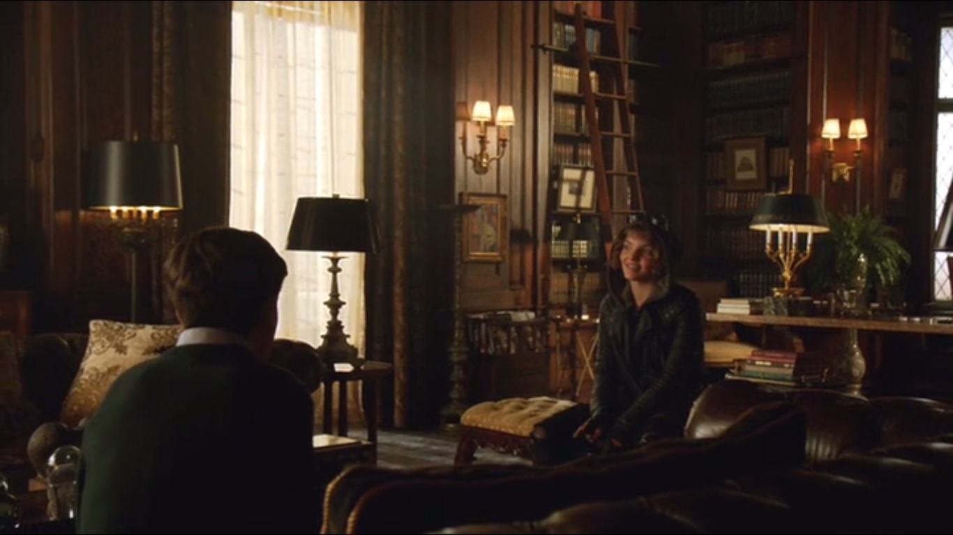 Next, the show must assume we didn’t think the explosion would hit the front page, because we come back to the front page of the Gotham Gazette. In big bold letters, the banner headline reads “EXPLOSION ROCKS GOTHAM!” Honestly, this is something I would expect from the 1989 Tim Burton Batman film. But anyway, Bruce is reading about last night’s explosion. Selina is still uneasy about being there. Bruce, the suave man that he is, begins to poke into Selina’s life by asking her what it’s like to live alone on the streets. Selina’s not digging this line of inquiry.