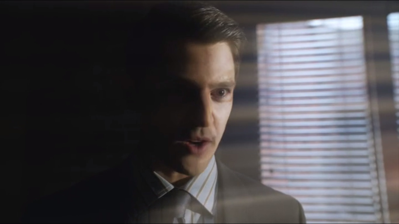 After some more shots of skyscrapers, we cut to Gordon and Bullock speaking with John Hargrove, played by Luke Forbes. John doesn’t know where Ian is, but he defends his brother, saying he’s not a killer. He only blew up munitions factories and offices- any place that made guns, bullets or missiles. Not the best way to get a point across, but Ian thought he was doing the right thing, until he ended up also killing two janitors one time. However, Ian felt guilty about that. He even turned himself into the police and pleaded guilty. We learn that Ian has had a history of mental problems. He’s not a bad man, just sick. So there’s still the question of who would free him?