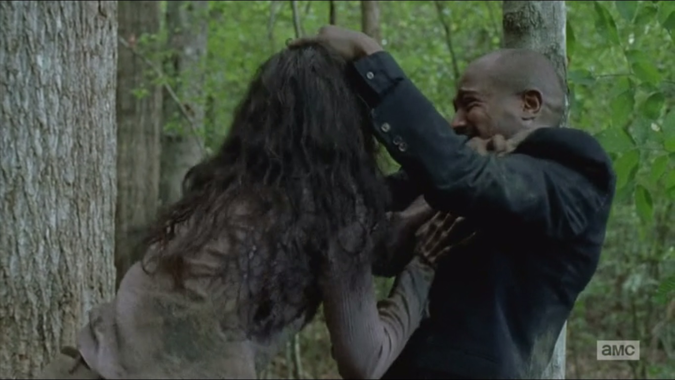 Tyreese tries again to get Sasha to talk. She said her goodbyes. At the very least, she should hold onto that, even if she wasn’t able to deliver the killing blow to Bob.