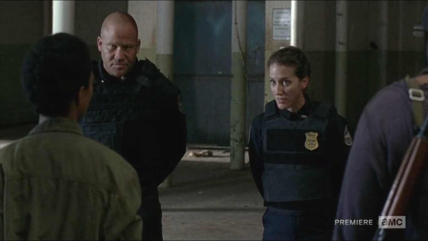 So a pair of officers follows the shots and come across Noah. They manage to subdue him before finding themselves surrounded by Rick and the others. So long as they follow Rick’s orders, they don’t have to die. More than that, there’s food and water for them, if they need it. One of the officers, noticing how Rick carries himself, asks if he was ever a cop.