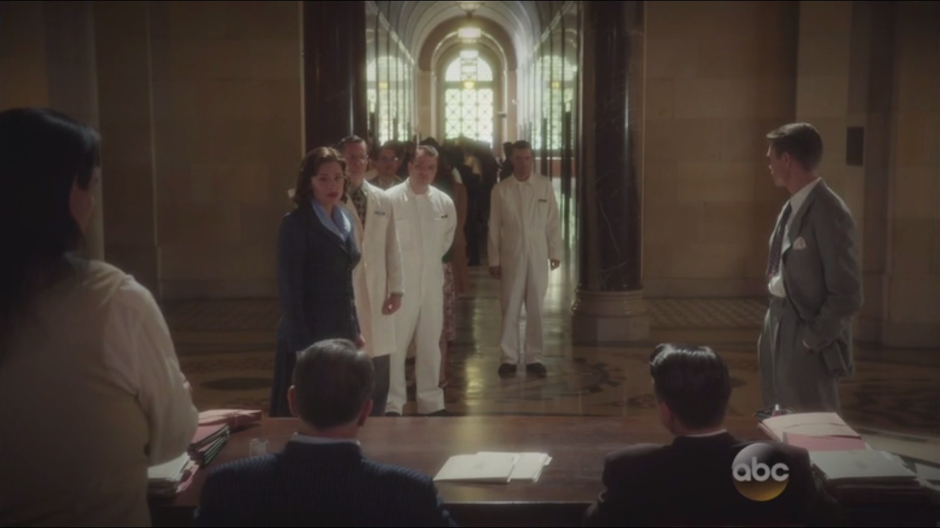 Atwell got to have fun again this episode as an imitation health inspector and I’ve gotta wonder just how many of those spare outfits that Howard Stark kept will she be using in her missions. Not like they’ll be used by anyone else. I doubt Mrs. Jarvis will make use of them.