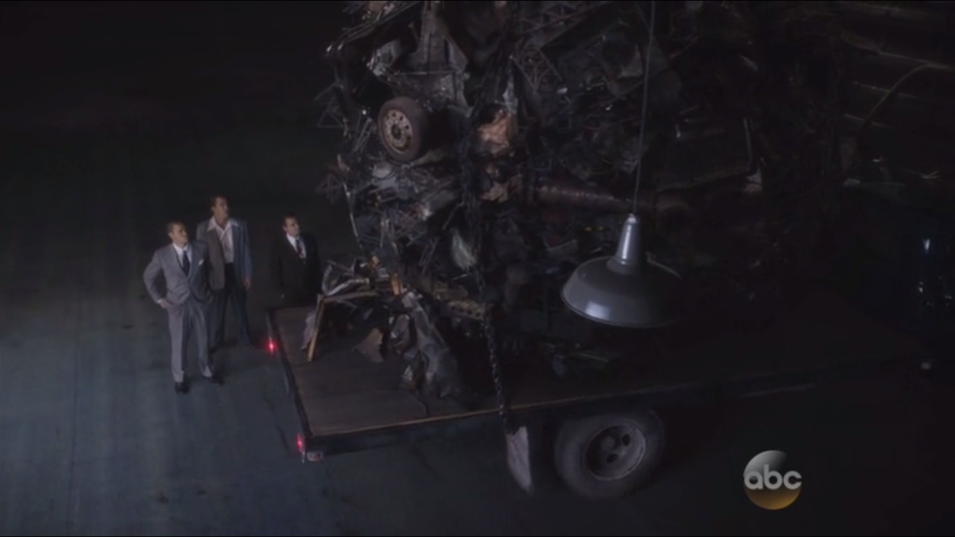 You know, for all the bullshit Peggy is spinning, she at least does a convincing job at it. Anyway, the foreman, played by Greg Bryan, isn’t about to defy this command, so let’s let the lady do her job. Peggy looks and scans up, down, and all around, but gets no readings. However, one truck is missing. Sheldon McFee uses his truck to commute, but he’s been out sick for the past two days.
