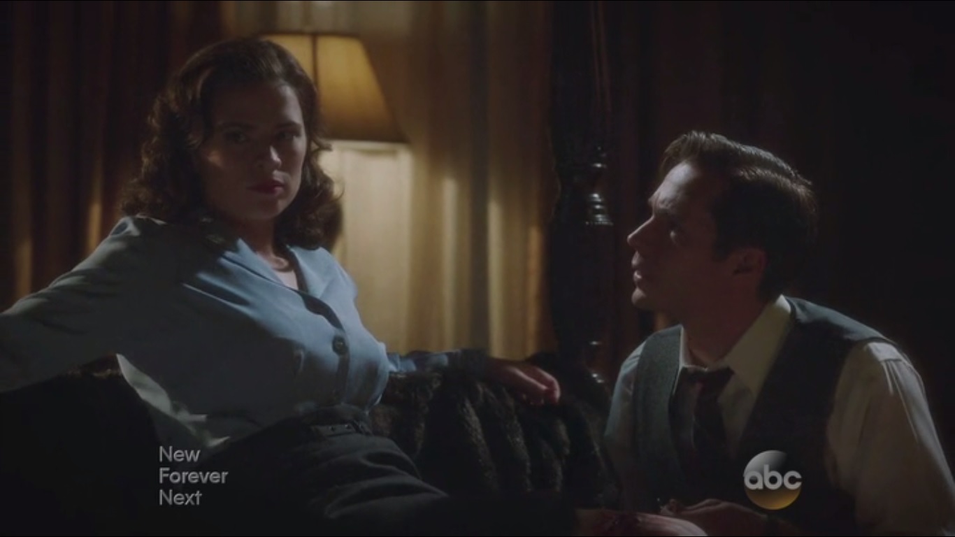 Jarvis shows Peggy around one of Howard Stark’s many residences- specifically, one used for private entertainment. Oh, you crazy Starks. Peggy thinks it would be too risky for her to stay. Despite Stark’s insistence, Peggy is still trying to clear him of treason. If she’s found there, she could get the noose. On the subject of actual work, meanwhile, Jarvis went through Mr. Stark’s files, but found nothing on Leviathan. Peggy hasn’t made much progress at the SSR office, either. As for Brannis and Green Suit, New York hospitals have no record of laryngotomy patients fitting those descriptions within the past three years. The task at hand is to find the Daisy Clover truck. Luckily, it opens at five o’clock. Jarvis offers his assistance, but Peggy shoots him down, telling him that he doesn’t need to almost be killed again.