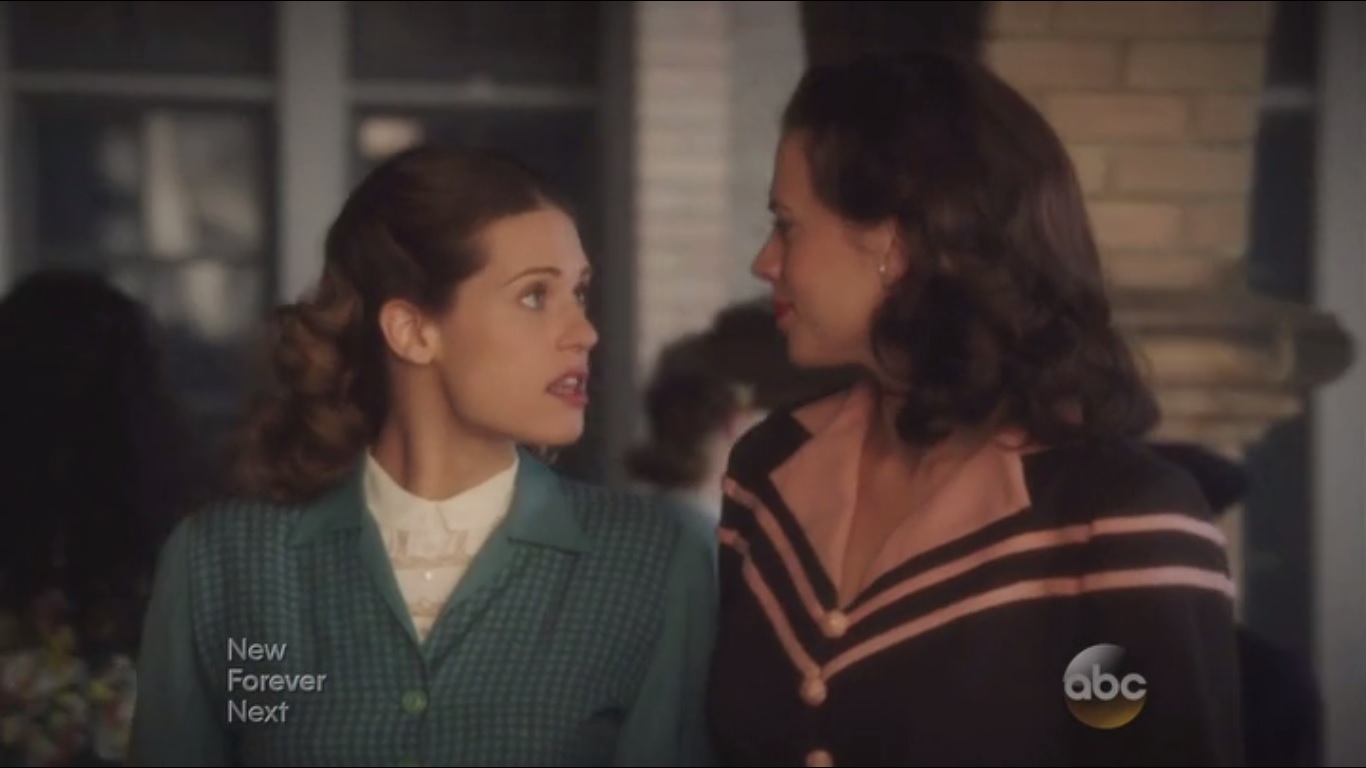 Peggy finally relents and lets Angie show her around the apartment and meet some of the girls. Mary is a legal secretary at Goodman, Kurtzberg, and Holliway, Evelyn is a lounge singer, and Sarah? Sarah’s a slut. Hey, Angie’s words, not mine. I didn’t even know they used that word in the 1940s.