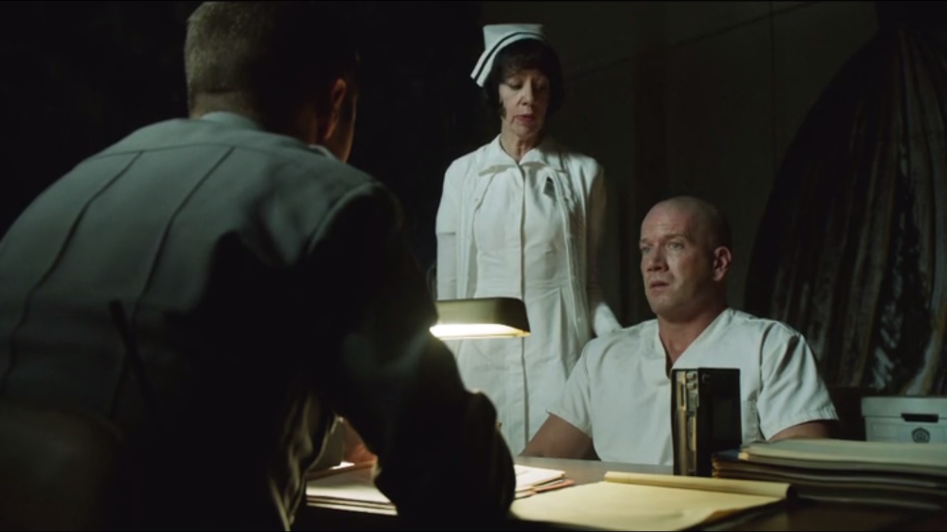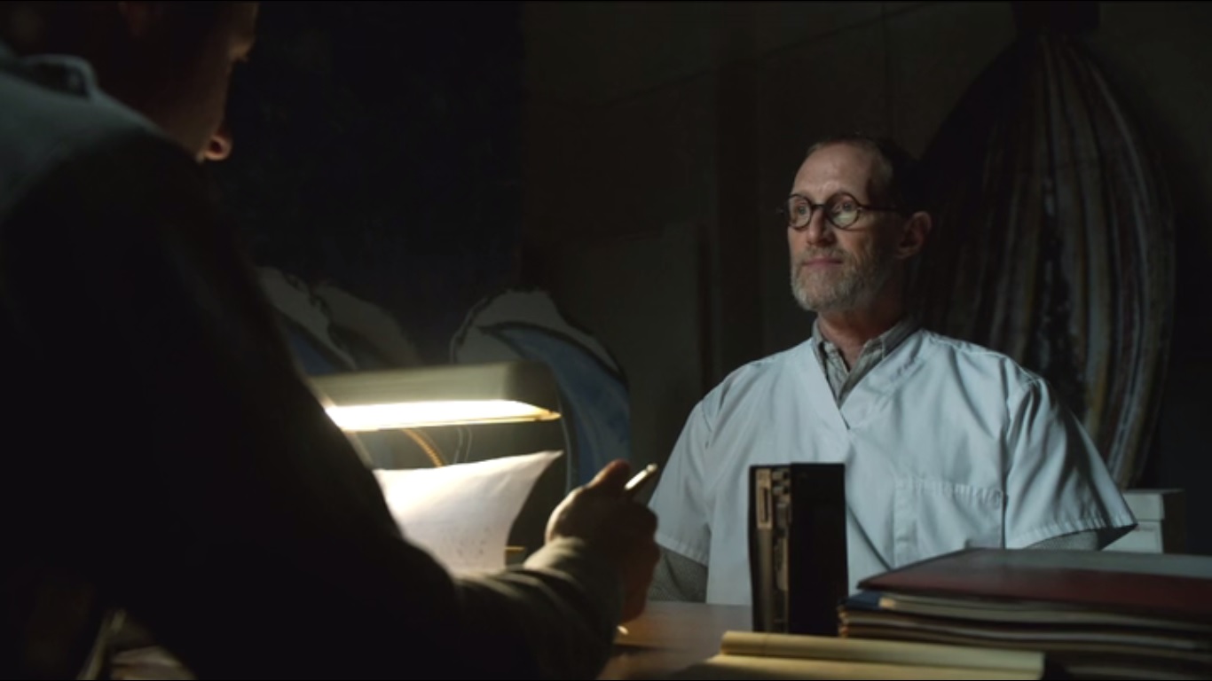 Finally, we meet inmate Aaron Helzinger, played by Kevin McCormick. He’s a bit timid, this Aaron. Nurse Duncan tells Gordon that Aaron never lies because he doesn’t have the concept for it. He killed his family with an axe, so you should at least tread with caution.