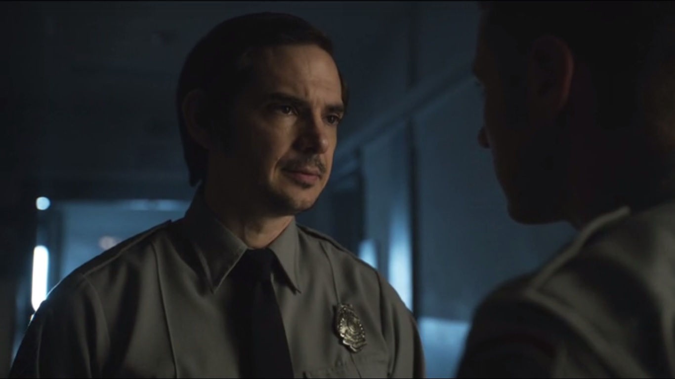 Okay, Bullock’s on the scene. Give us something to care about, Donal Logue. Bullock is overjoyed to see Gordon again. He’s certain that this is a police matter- third degree assault at least. Lang is livid that Gordon would go around him and call law enforcement, but hey, Bullock figures that Lang would want to keep this sort of thing quiet. He asks Lang if he did it. He denies it, though he does have the skill. So, looks like Bullock’s gonna have to take Lang down to the precinct. While that happens, Gordon plans to look through the staff records.