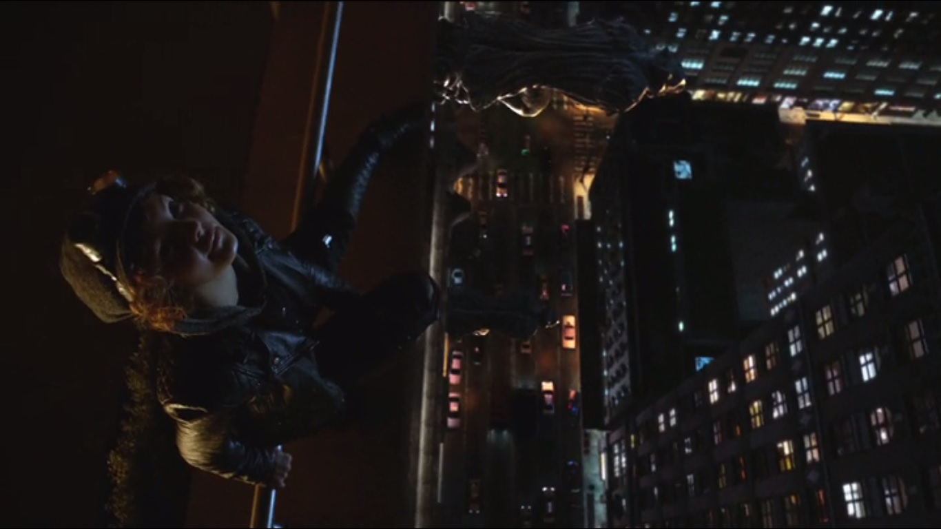 Going back to their forced entry, how the hell did Selina scale that entire building? We see a shot of her hanging around on the balcony and that’s a long drop down. I know that Selina Kyle is acrobatic and nimble, but she’s still a kid. She got all the way up there in no time at all.