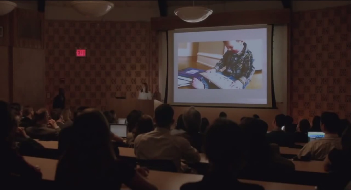 But Alice is still a professor. She has that much. She heads to the university to give a lecture, but can’t remember which lecture she’s giving. She calls upon the students to jog her memory and remind her that she’s speaking on phonology.