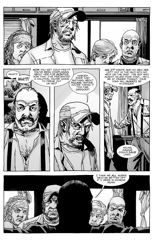 Gregory wants to be back in charge because he’s not a fan of how Maggie runs things. This is a running trend both on the Hilltop and the people in the Alexandria Safe Zone. New folks come in and run things their way. Sounds like encroaching on their territory, but if it weren’t for Rick and company, Negan would still be free and the Hilltop folks would still live in fear while having to pay tribute to a man they’d never seen.