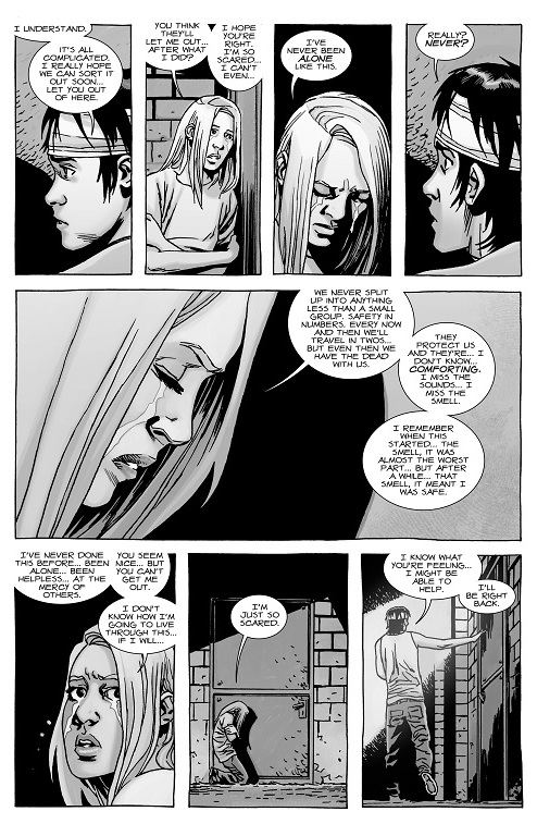 I certainly hope that Lydia turns out be some girl looking for guidance, because Carl could be going down a dangerous path by opening up to someone he hasn’t seen. We don’t know everything there is to know about her yet. Carl has good intentions, but he’s not stupid. If something goes south, he’ll be prepared, but for now, this is the start of what looks to be a longstanding friendship.