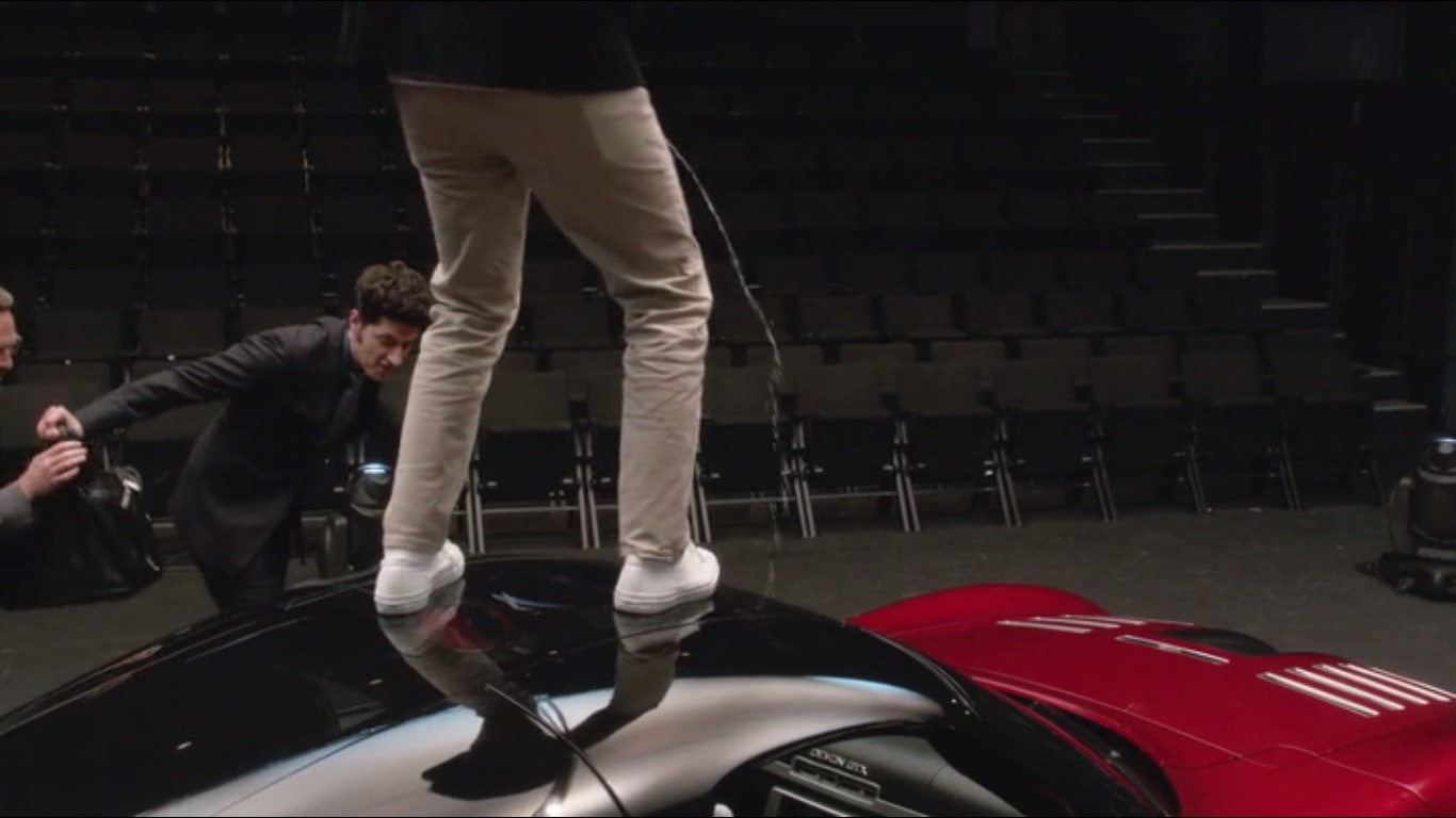 Oh, Ellis isn’t a fan of the car, so he pisses on it. Then he takes an axe to it and walks off. Our genius, everybody.