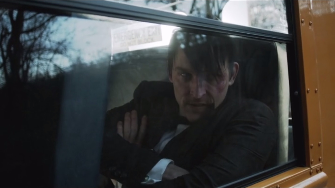 Some choir singers happen upon a wild Penguin resting in the leaves. He’s well, though. Like the prodigal son, he has fallen. Like Job, he’s been tested and survived. Luckily, the bus they’re on is headed for Gotham City.