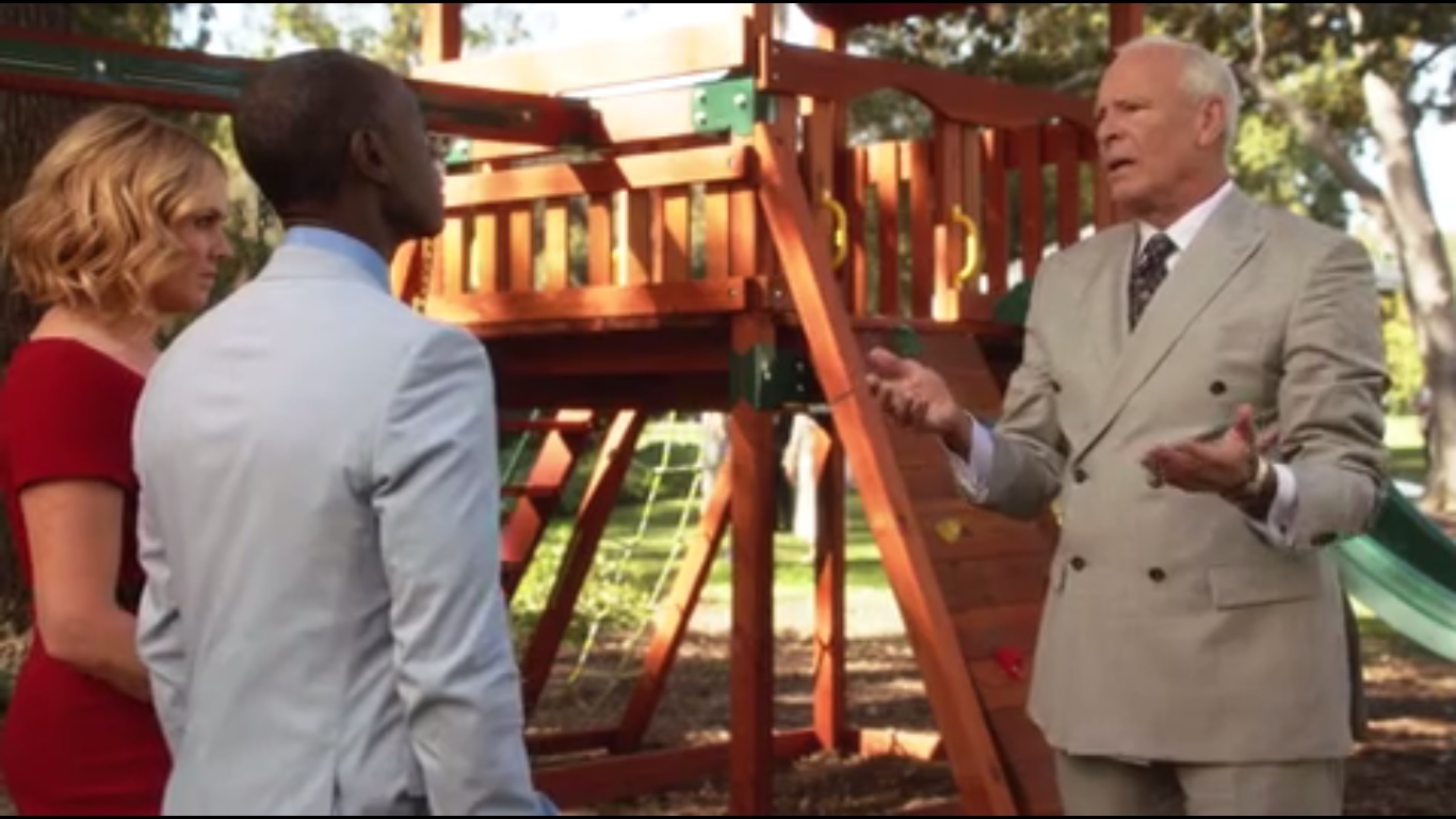 Ellis shows up and we learn that he isn’t a fan of clipboards since it makes him look antiquated by association, but hey, perception isn’t important in today’s world. Jeannie and Marty point him to Maya, but Ellis walks right by her, grabbing a drink in the process, and heads to the podium. He announces that he’s writing a check for $1 million to Maya’s charity. How sweet. Sounds like a nice gesture, but let’s keep going.