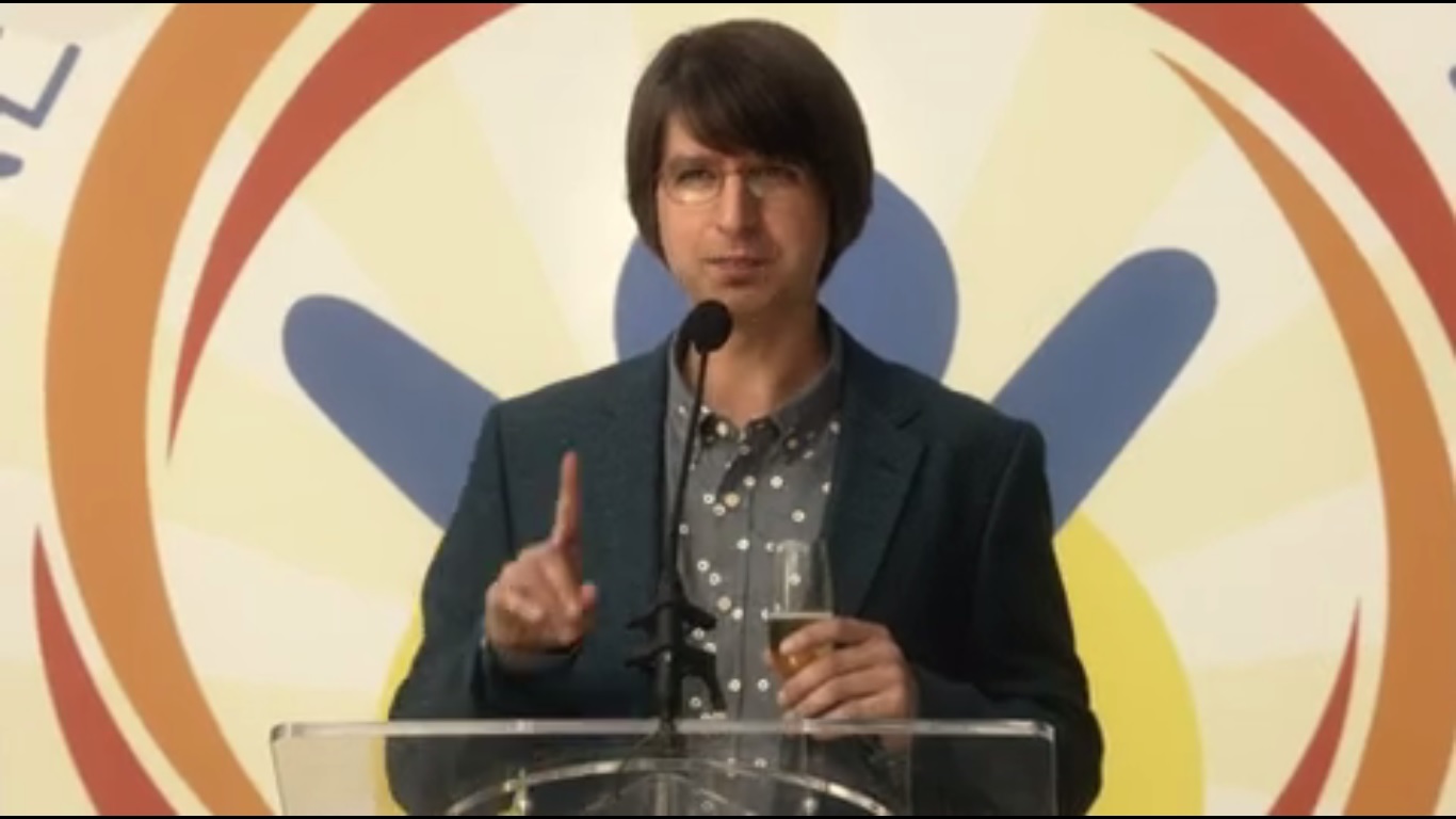 Clyde goes through his pitch with Kelsey and Doug, neither of whom is enthused with his approach. Doug feels that Clyde’s presentation style is a little aggressive and off-putting, but then, he has money issues, so he has more of a reason to be worried. Kelsey stops the two when she spots Danny Buckingham- creator of easyasbuck.com: a website that provides HTML tutorials for teenagers, sold for $65 million. Doug plans to talk with him because he can relate to Buckingham in a way that the others can’t- one child prodigy to another. Keep in mind that Doug wasn’t a child prodigy. That’s not a problem, Kelsey says, as he’s not really talking to Danny Buckingham.