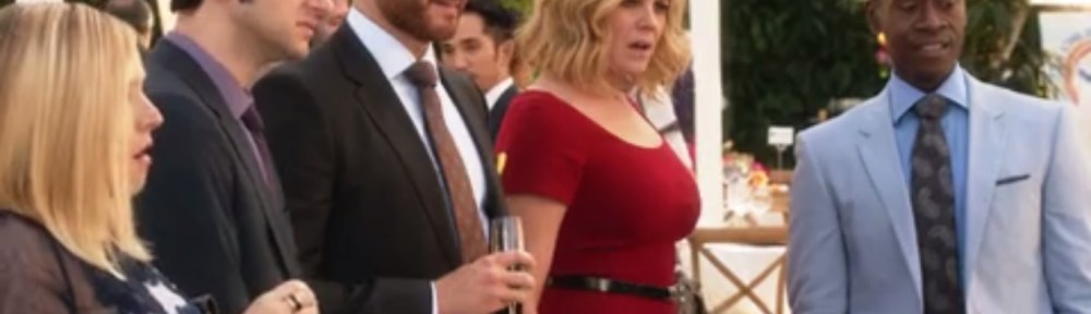 Kelsey arrives just after Clyde and Denna learn that Doug breast fed until he was four. Wasn’t there a joke like this on the first Grown-Ups film? Kelsey introduces herself to Denna, who points out that Kelsey’s dress used to be Chanel until Kelsey decided to cut holes in it. When Marty comes over, he still couldn’t give two shits about the start-up that Doug tries to force into conversation. Marty needs to speak privately with Denna.