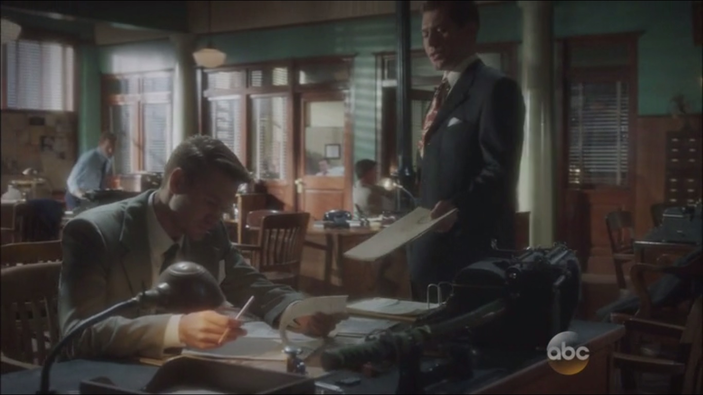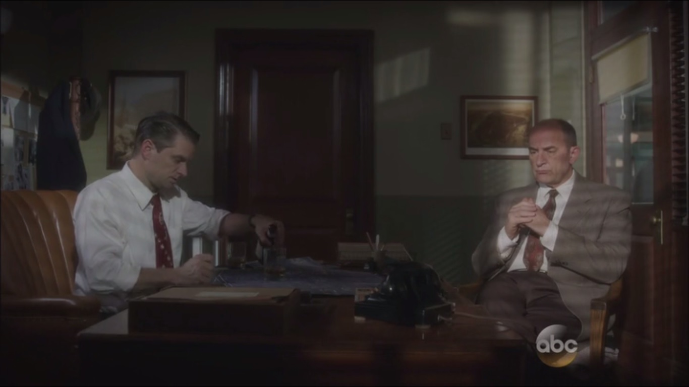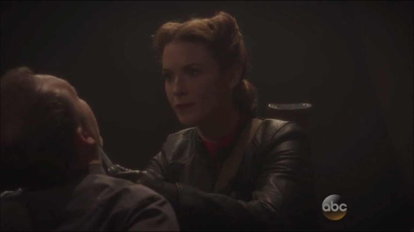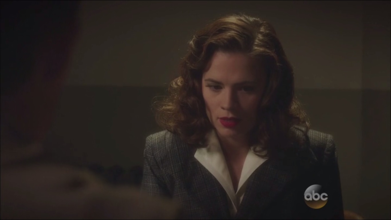 In interrogation, Sousa places before Peggy the club photo and the orb. Dooley tells Sousa not to go easy on Carter just because she’s a girl.