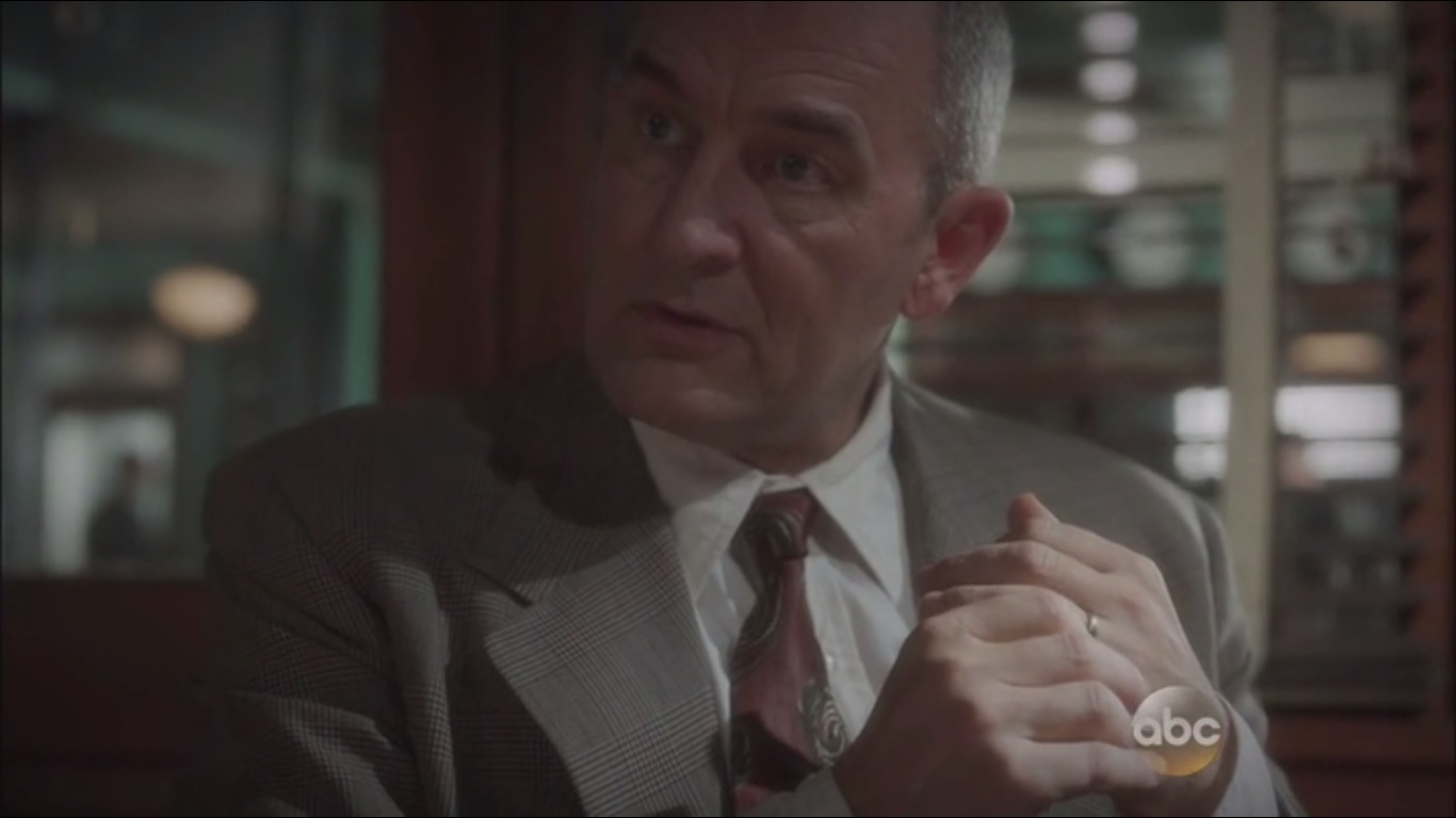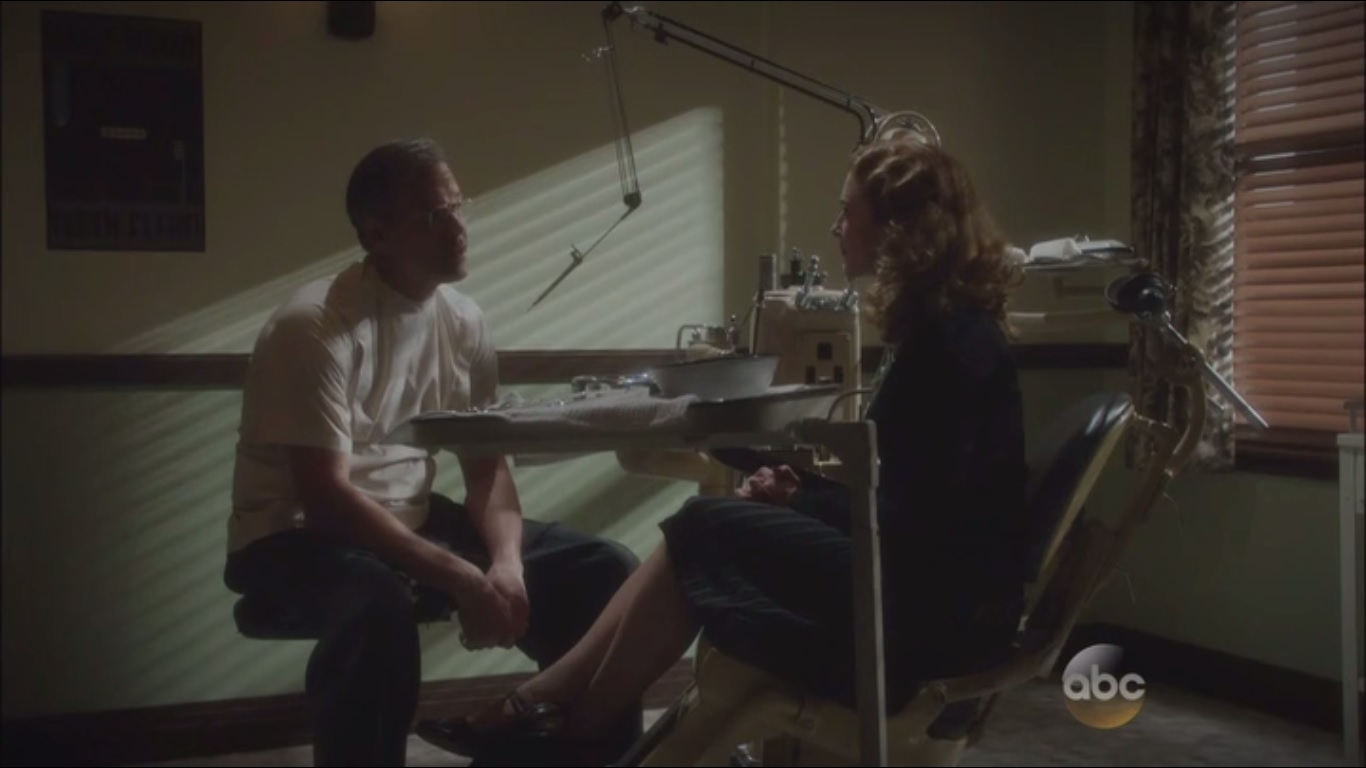Oh, and pretty easy to tell that the dentist was going to get his. Even before he placed his hand on Dottie’s leg, the fact that he said he sent the rest of the office home to give full attention to his applicants meant he would try and put the moves on her. Ah, well. You shouldn’t put your hands on someone like that when you don’t know them, particularly a Russian assassin.