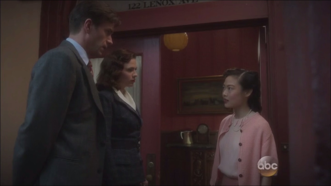 It was great to see Peggy and Edwin working together again, even if Peggy acknowledges that they aren’t on the same team. I feel like they’ve been seen at the L&L enough times to just sit at the same table, though. Their banter didn’t miss a beat and I particularly liked how Peggy wanted Jarvis to join her when talking with the women since doing it herself wouldn’t be as fun.