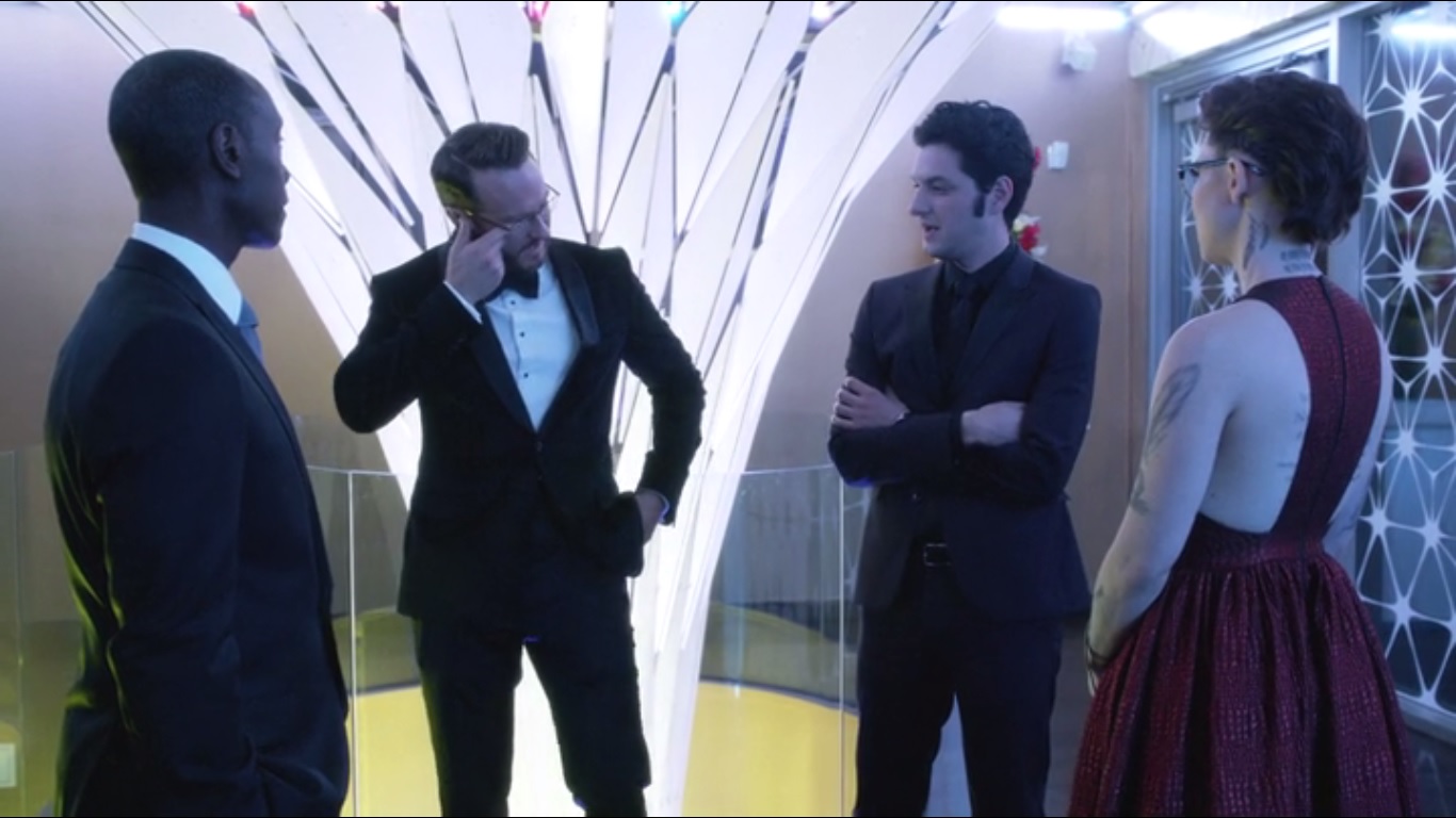 Back at the party, Clyde, Doug, Kelsey, and Marty deal with the negative mood being spread by Grant’s rants. They need Jeannie’s wholesome good looks, but luckily, Jeannie is on the way via her car. That’s important because, speaking of Uber, Doug says, there’s still the matter of that incoming call from Google. By the way, no one mentioned Uber before Doug did.