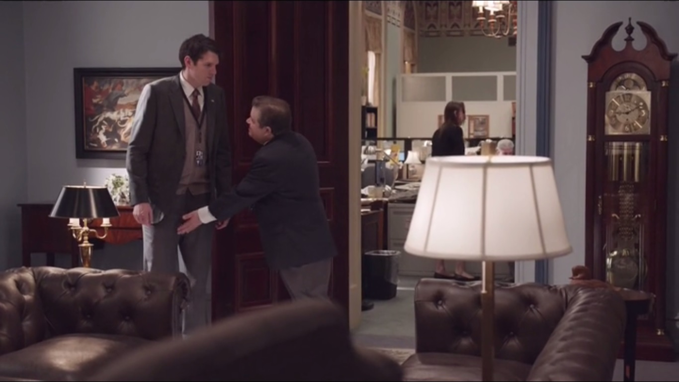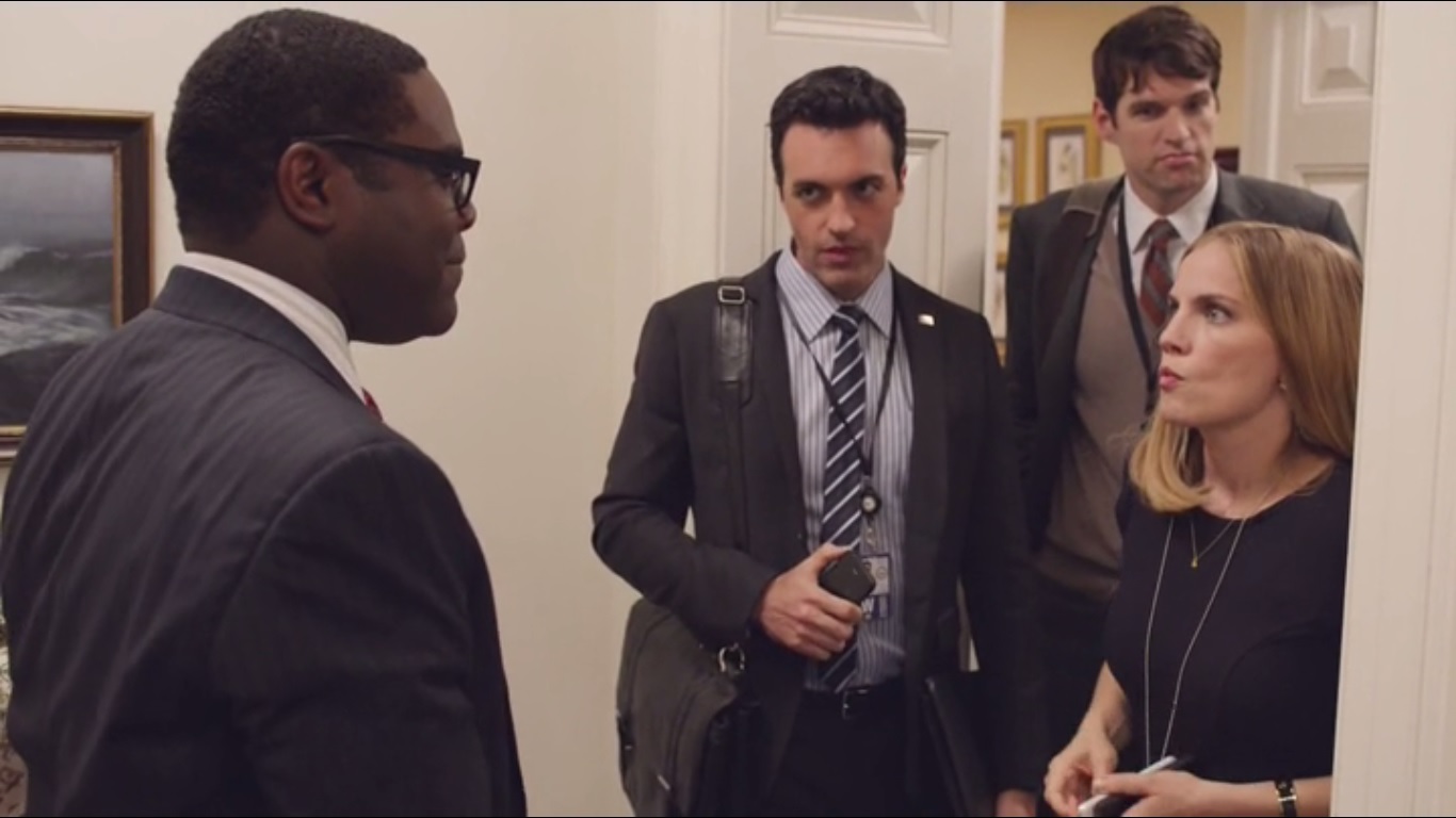 When Wilson is called away by one of her staffers, Dan tells Jonah that he can’t lie about stuff like that. Jonah stands his ground. After all, he has to go to about this all on his own, while Dan at least has a staff. He wants a staff. The confrontation almost gets physical when Jonah threatens to reveal that Dan was the one who planted the Danny Chung torture rumors.