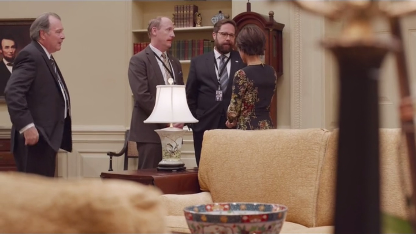 Gary takes it upon himself to plan for the upcoming dinner, and the cost matters not to him. While preparing, he gets a surprise visit from his favorite White House social secretary, Patty, played by Michaela Watkins. All these orders, though, are coming from his group, not necessarily Selina, and that includes swapping out the painting.