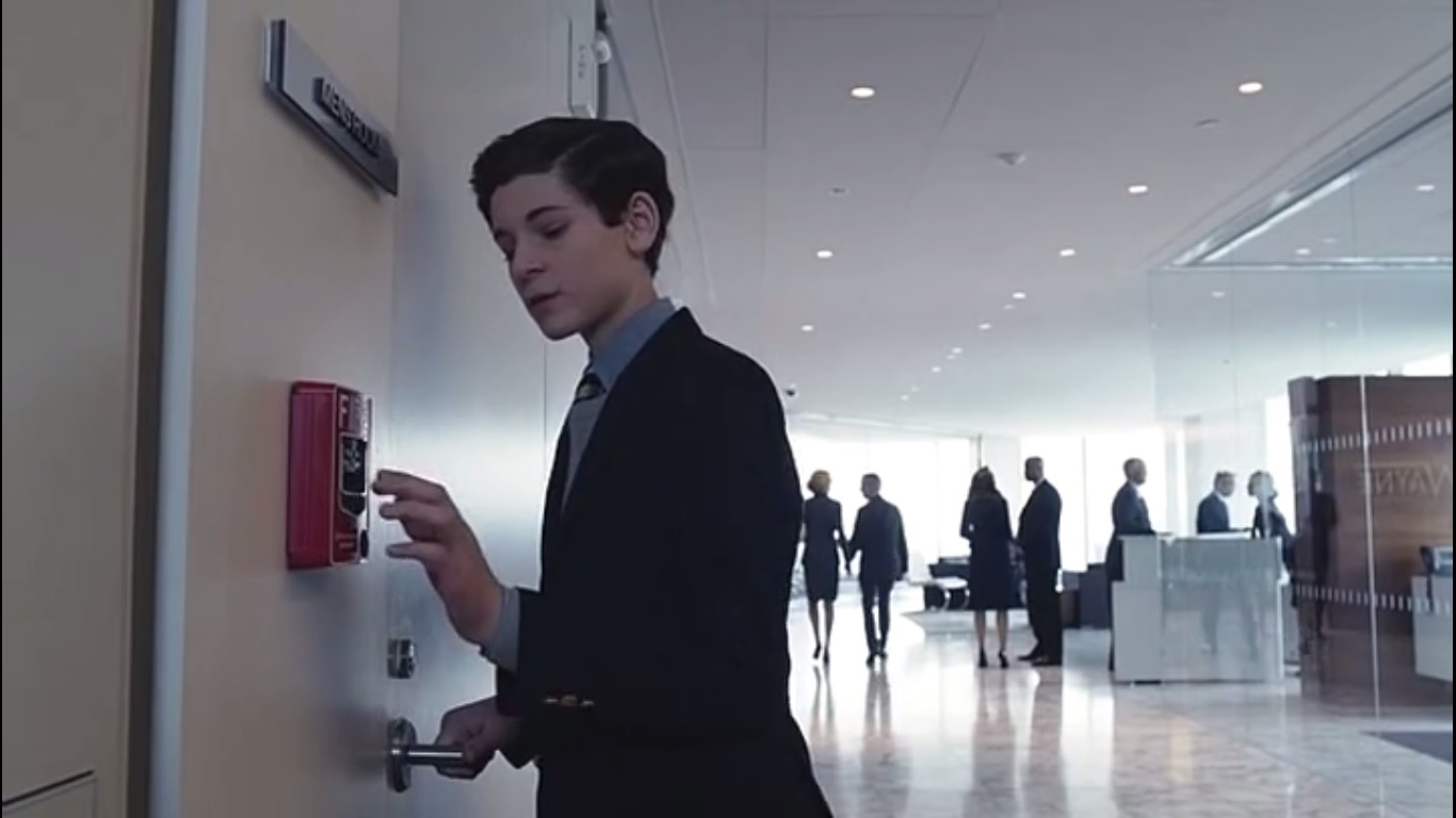 Bruce gets a tour of Wayne Enterprises and receives a lowdown of the Physical Operations Department, which handles logistics for the corporation and manages properties. When Bruce asks about how to find the restroom, he makes his way toward it before then pulling the fire alarm. Future detective and master of stealth, right here.