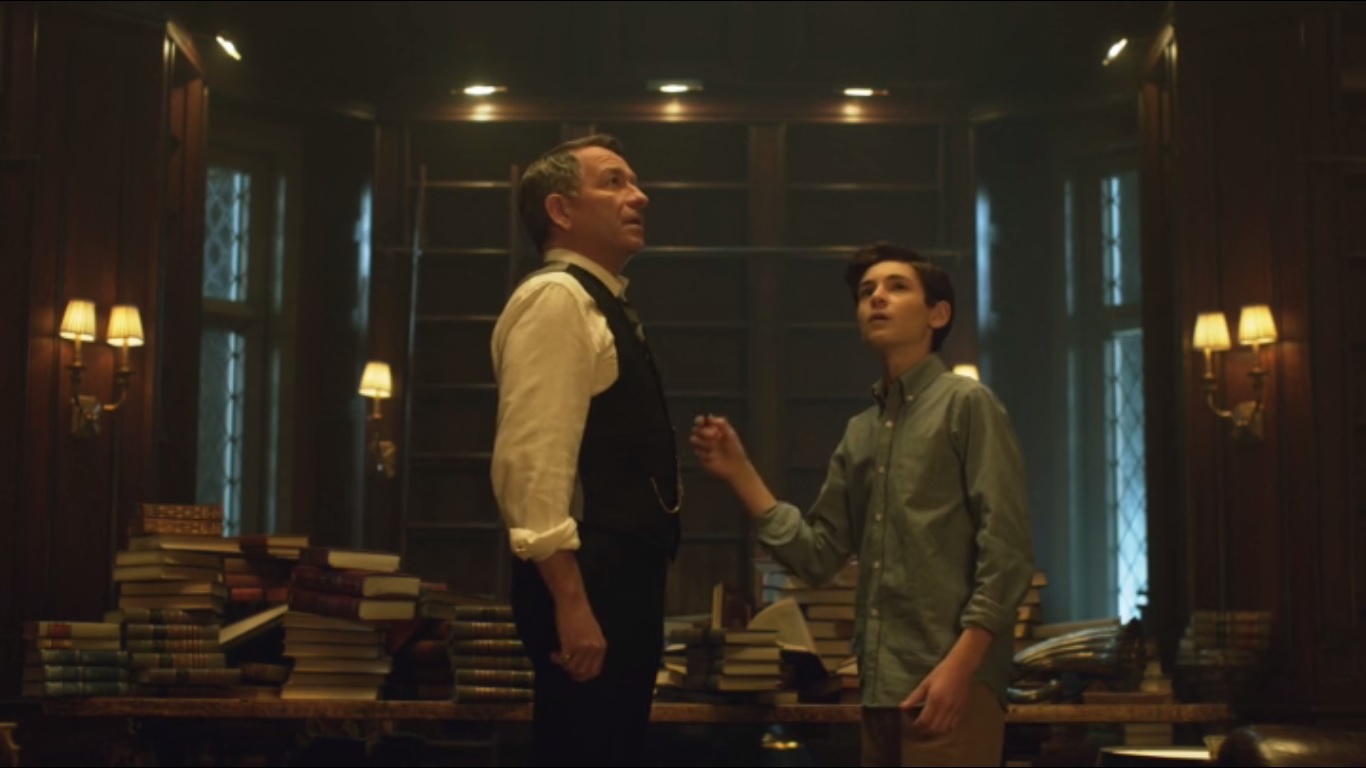 And then Bruce finds a switch hidden in a book. He presses it and the fireplace reveals a hidden staircase as the first season of Gotham comes to a close.