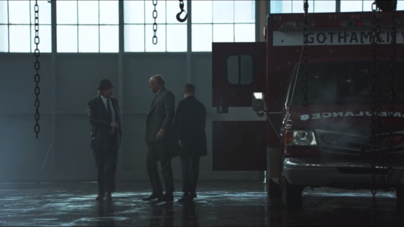 Then we get a shootout that has nothing on Jim’s shootout with Zsasz. Eventually, Bullock comes to save the day. There are ambulances in the basement, so Jim is prepared to take Falcone, but he also needs to bring Penguin and Butch since they’re in his custody. They manage to get away in one of the ambulances and escape the gunfire from Maroni’s men.