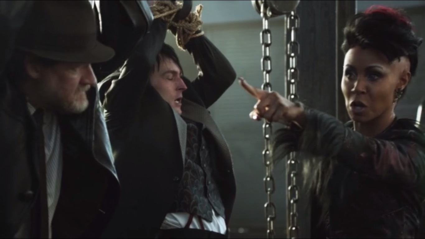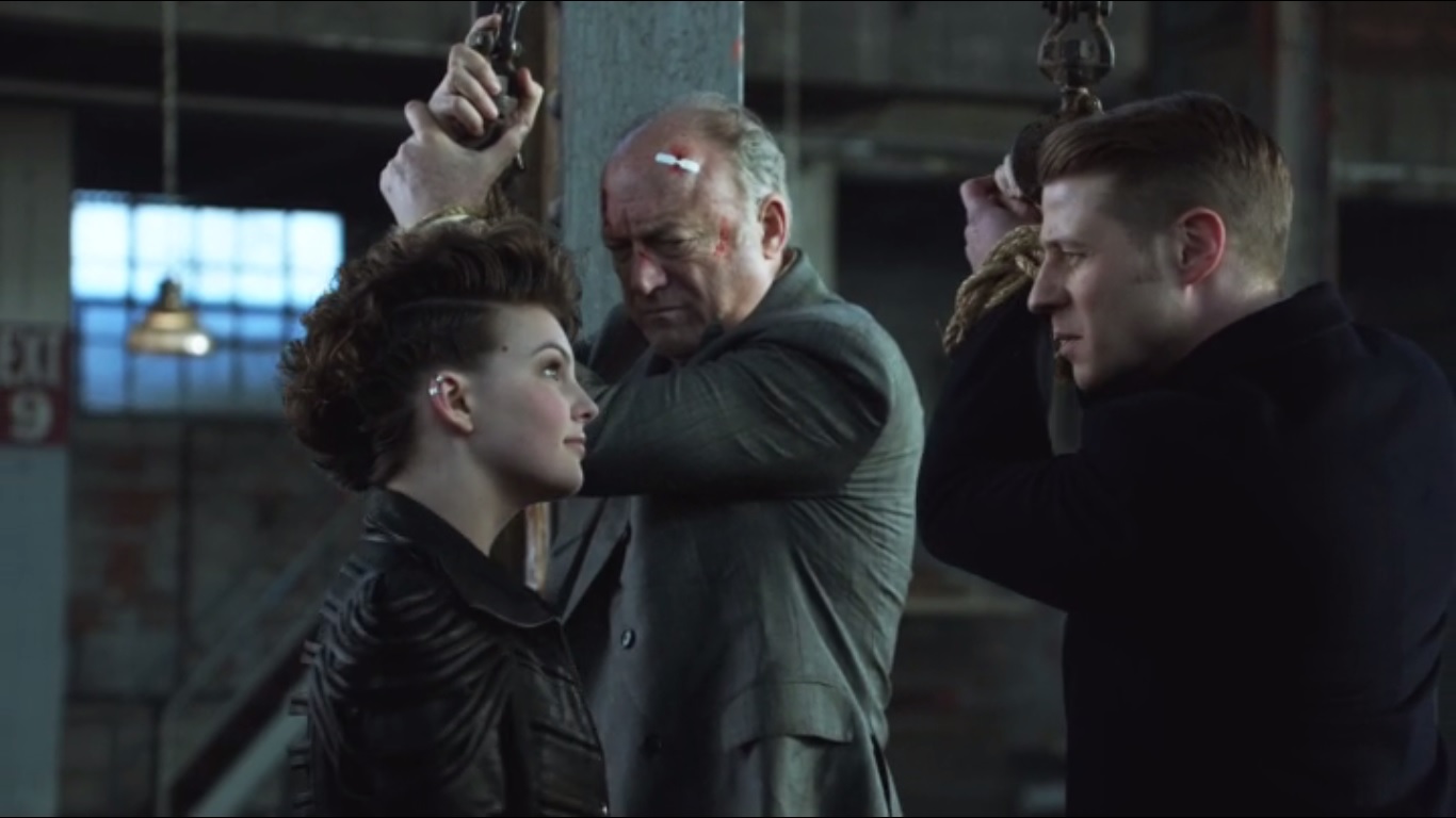 When Fish returns, she reveals that she’s made a sweet deal with Maroni: she can have all of her territories back in exchange for delivering Falcone’s head to Maroni. She turns on Penguin, livid about whatever he may have done to Butch. Fish also promises slow, painful deaths for Penguin and Falcone. She’ll keep it simple with Gordon, but she’s cool with Bullock.