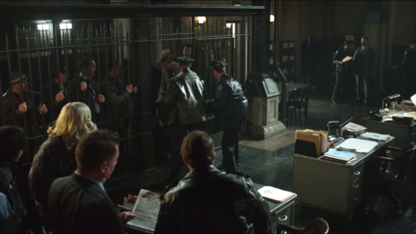 Well, at the very least, the cops are busy. GCPD ends up filling their holding cells with various henchmen and thugs. Gordon watches this play out and turns down a salute from Officer Katz, played by John Clarence Stewart, since he knows that he’s on the chopping block.