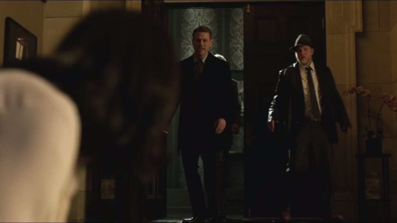 What isn’t obvious- because I suck at transitions- is why Falcone has chosen this moment to leave Gotham. He’d already been betrayed by Fish one time, but that reinvigorated his drive to stay in Gotham and solidify his reign. He’s not as bad as Maroni in that he actually wants to turn the city around, but I don’t see how this particular encounter made him rethink his decision. Was it Fish’s hairdo? It probably was. Could he have remained in power and been on somewhat good terms with Gordon? Possibly, especially after revealing that he knew Gordon’s father, but with him leaving, this partnership looks to be up in the air for now.