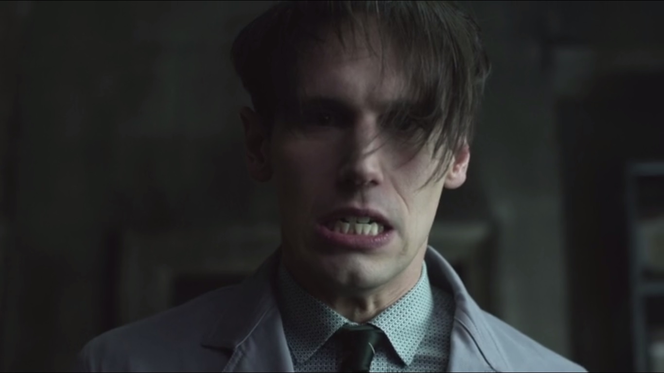 Kringle confronts Nygma about Dougherty’s note and how the first letter of every line spells out Nygma. What an amazing coincidence, but Nygma still says that he knows nothing about this. He has a Jekyll/Hyde moment that, I suppose, is supposed to make Nygma appear menacing.