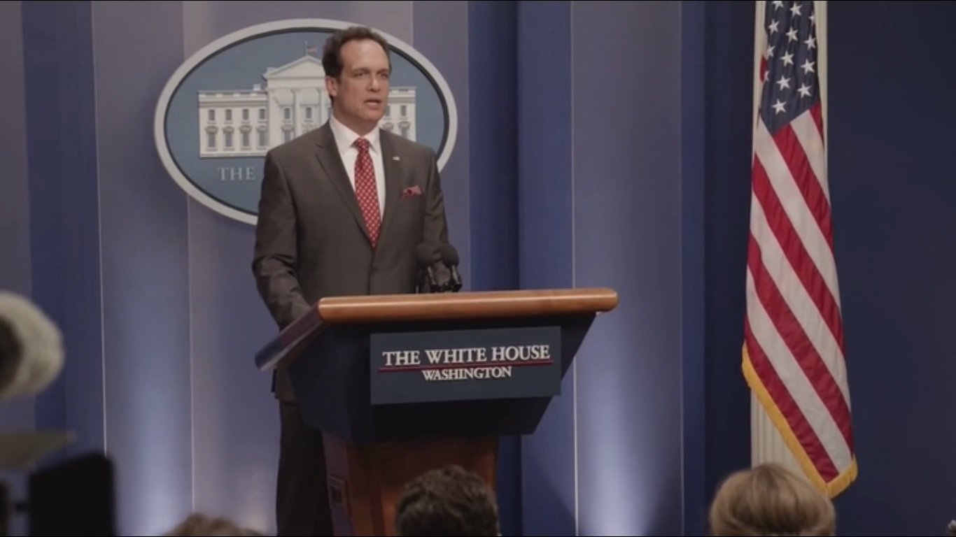 Back in the States, Bill Ericsson briefs the press about Selina’s trip. In her absence, Vice President Doyle will be picking up part of the President’s schedule, starting with the Rainbow Jersey event that supports all sexualities in sports and will feature NBA star Freddy Wallace. Sue and Kent, watching this play out, aren’t a fan of Ericsson finishing everyone’s sentences and his apparent lack of people skills.