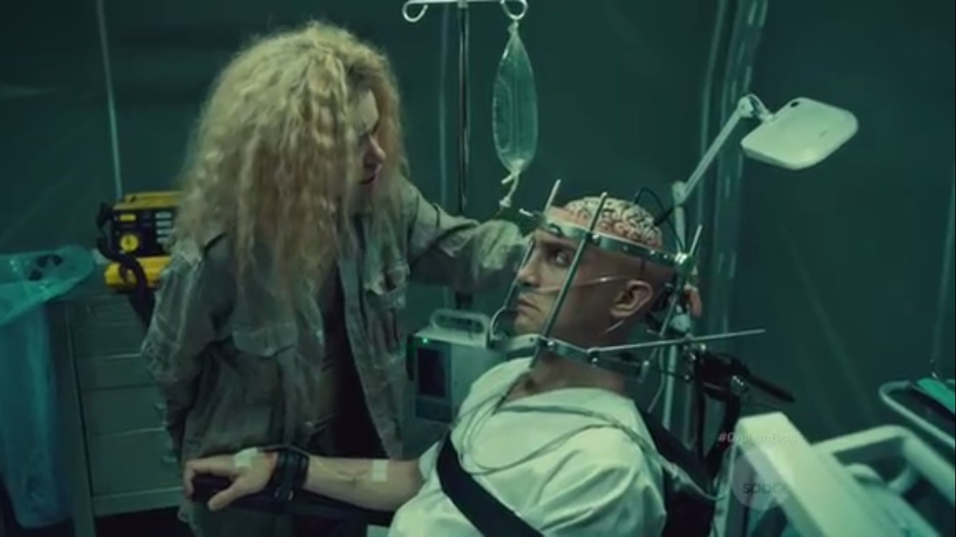 Helena’s arm is like a dead fish. The scorpion tells her to get moving before the drugs start to settle in, so she starts exploring. After all, to escape the first box, she has to know what the second box holds. Helena makes her way through the facility and eventually sees people heading in and out of what looks like a medical room. Upon closer examination, though, she sees that the doctors are experimenting on a Castor clone…