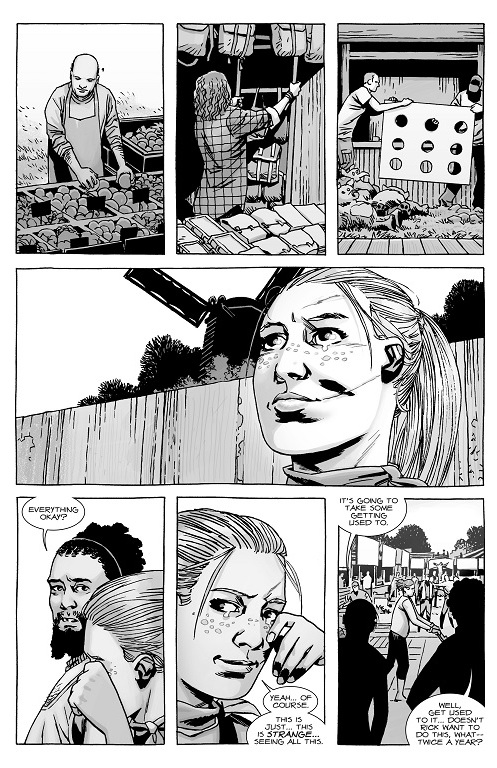 Issue #142: “A Gathering,” pushes the story forward by bringing the groups of the Alexandria Safe Zone and Hilltop together for the fair.