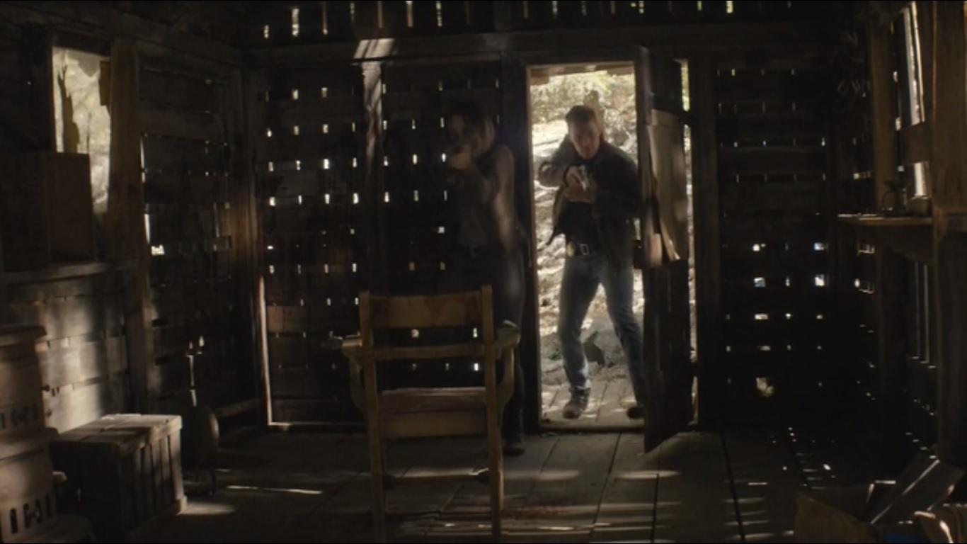 After Frank and Jordan have some bed time, Frank notices that the damn water stain in the ceiling is finally gone. Well, no more monologues about that, I suppose. The two talk of selling what they have, leaving this life, and buying a farm so they can grow organic products as farmers. As far as Frank getting back in the game, though, with McCandless, Jordan asks if he trusts him. Frank just trusts self-interest. But this talk is interrupted by pounding on the door. Frank gets his gun and heads to the door.