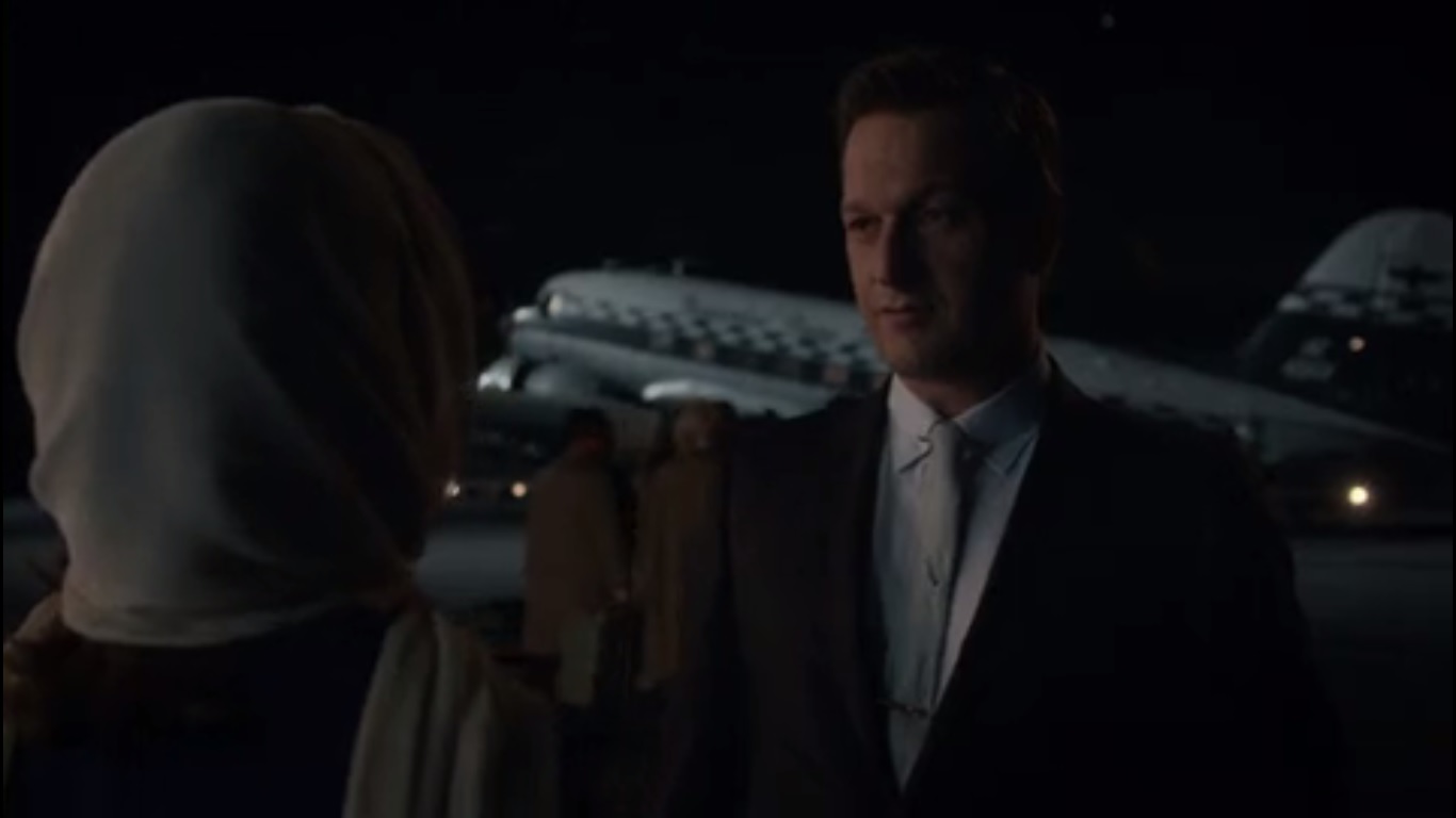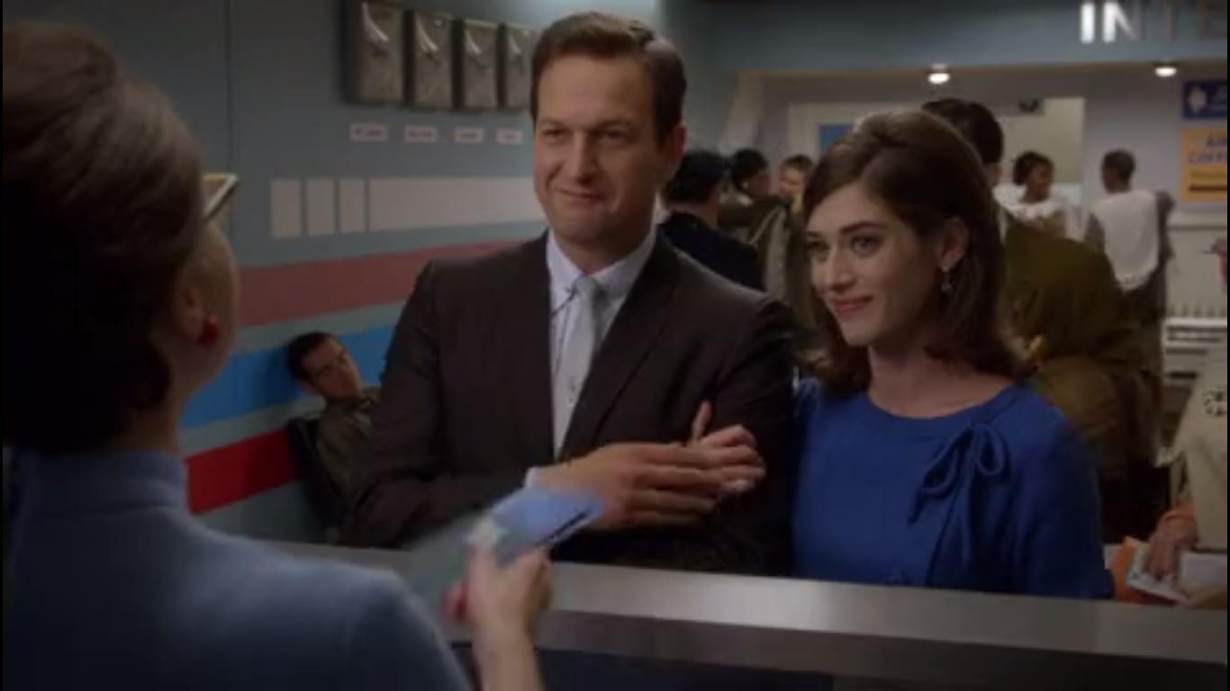 At the same time, Dan and Virginia prepare to board at an airport. Virginia keeps looking behind her, as if expecting someone else to arrive…