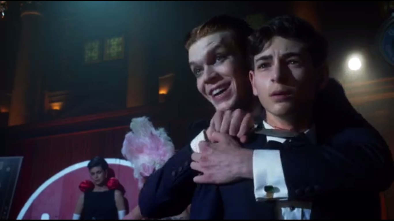 But when Bruce doesn’t present himself, Barbara suggests that Jerome kill Alfred instead. Before Bruce can come through the curtains, Jim stops him for a second.