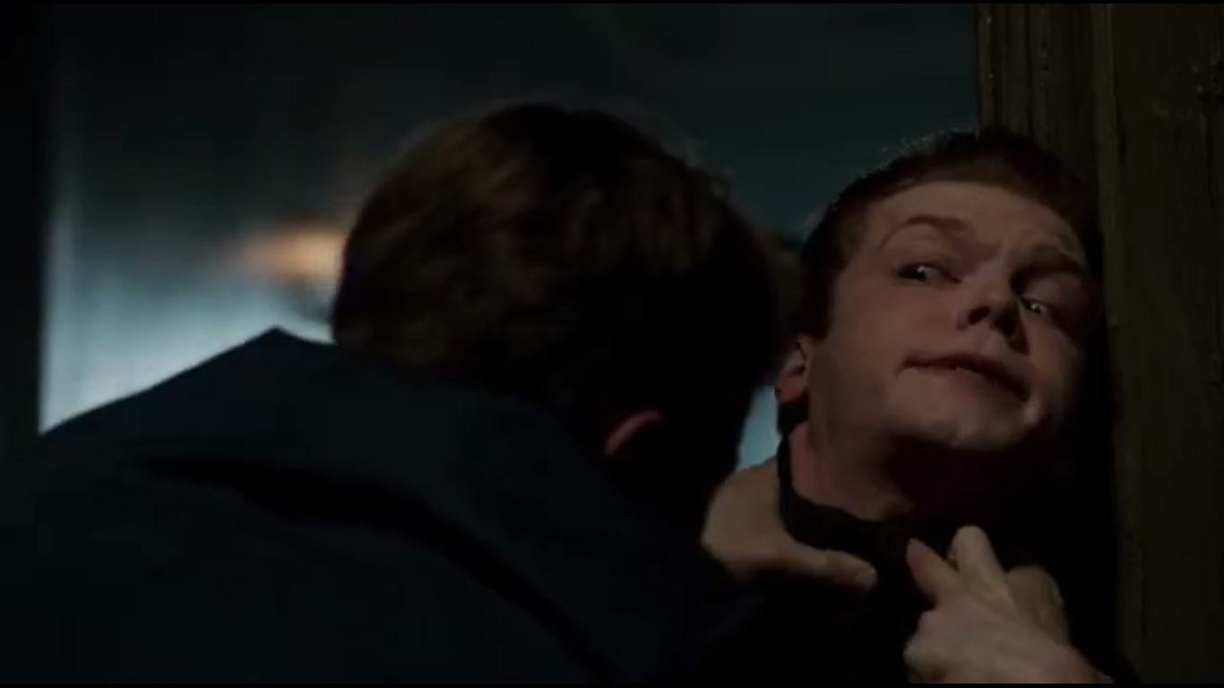 Before Jerome can land a killing blow, Jim and Harvey knock at the door. After hearing a noise, the two force their way inside and find Paul with a knife through his eye. As Harvey moves one of Paul’s hands, he activates the knockout gas which, you guessed it, knocks him out. Jim manages to pull him out of the room and into the hallway.