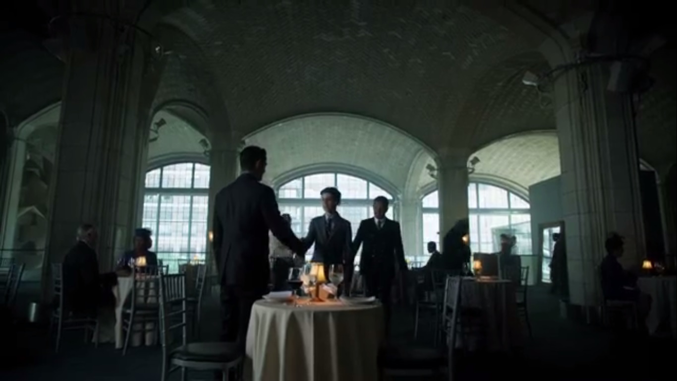 The episode with Penguin firing off a shotgun to call his arguing patrons to attention. Time to talk with some civility, shall we? Penguin sits at the table. No one knows who executed the Arkham breakout, and Penguin can’t believe that. The GCPD thinks it’s still Paul Cicero, but others thought it was Penguin himself.