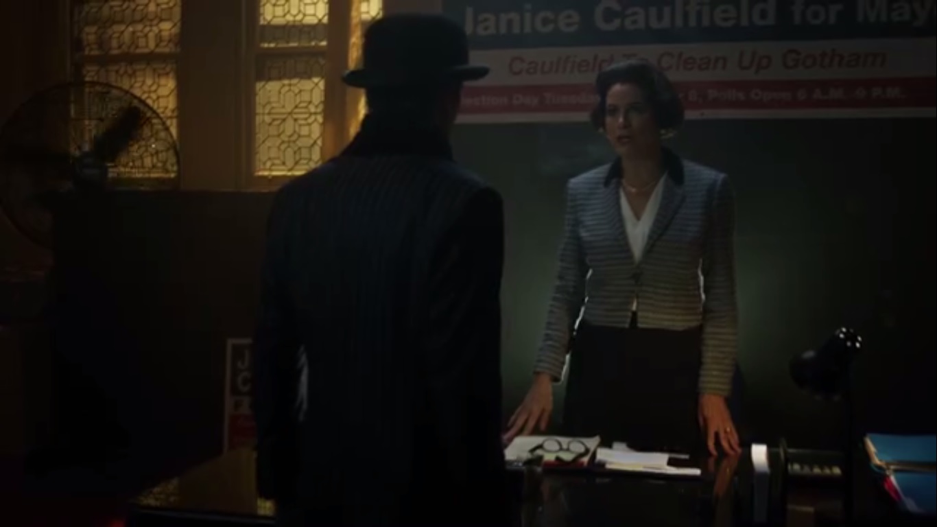 At Ms. Janice Caulfield’s office, masked men enter the office. Penguin confronts Caulfield herself, played by Saundra Santiago. It’s late, but there’s no time for delay. He confirms that he is here to kill her. She’s a mother, but Penguin has one of those, too. Penguin takes out a knife and gets to stabbing.