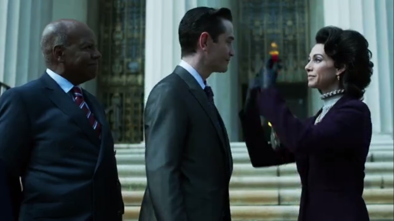 So “Strike Force” progresses Theo Galavan’s plan to take over Gotham with his official candidacy as he ropes in Penguin to thin out the competition, putting Penguin in an awkward position that not even Jim, for all of his heroism, can shake him out of right now. I’m glad someone is coming in to sweep up the GCPD, but again, Barnes popping in out of nowhere with no previous mention is a slight issue.