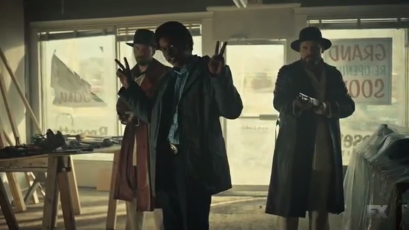 That was a constant in this episode: avoiding the firefight. Or at least not wanting to make the first move. Every confrontation felt like a game of Chicken. The Gerhardt family has firepower and backing, but they’re not willing to strike unless they’re attacked first. They won’t shoot Lou because he’s an officer of the law, and Lou won’t shoot them because that won’t help his investigation.