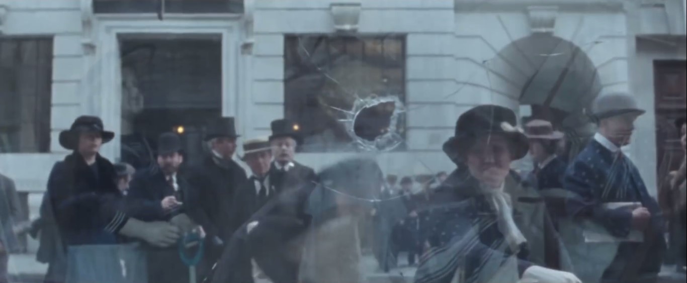 Following this, Maud and Violet join a joyous crowd of women awaiting to hear Parliament’s judgment. The members soon arrive for the moment of truth…and they learn that, according to the Prime Minister’s verdict, there is not sufficient enough evidence to support a suffrage bill. As expected, the women are livid. They yell ‘Sham’ and ‘lie’ as the officials retreat. The crowd grows rowdy, so the officers get to work as a riot breaks out. Blood is shed, women are clubbed and fall to the ground, and all hell breaks loose.
