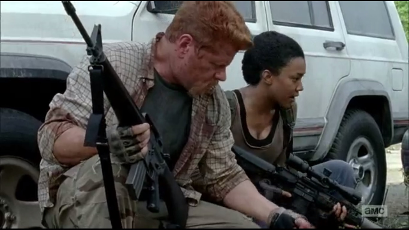Again, I think the start of this episode was great. The shootout with Daryl, Sasha, and Abraham being attacked and almost cornered from all sides felt very reminiscent of Rick and the others being herded in Terminus. But Sasha had a point: there wouldn’t be many people coming that way, so these attackers had to be waiting for someone specific. Another point I’m guessing will be addressed later.