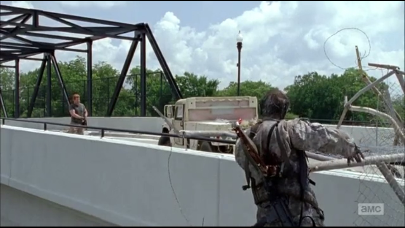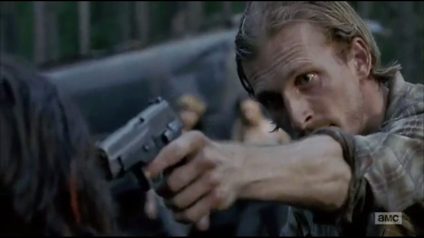 Daryl challenges their intelligence, which gets him a gun in the face again. Are they being stupid? Daryl tells them that he has somewhere to be. The man claims that Daryl is one of them and then tells him to keep moving.